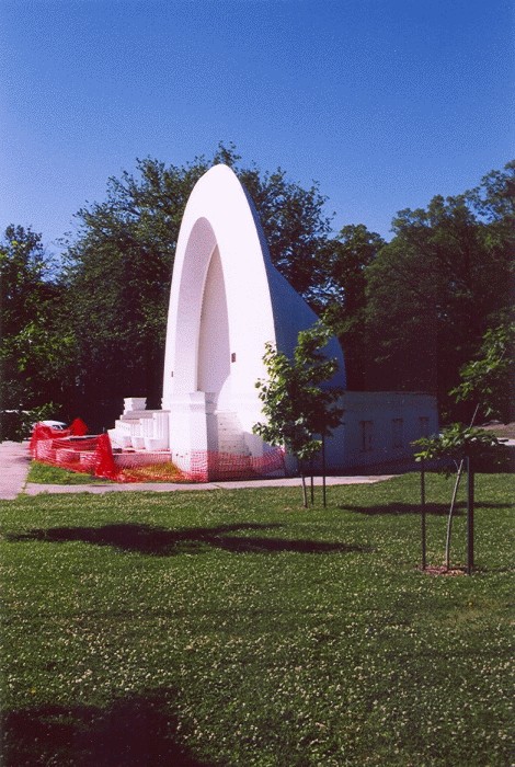 While it was initially thought that the Karl King statue would be located near the street close to the flagpole, another possibility would be that it could placed to the north of the bandshell which bears his name. In that location, it could be seen by all who enjoy performances there. A third possiblity would be close to the bandstand in Karl King Park downtown in front of the library.