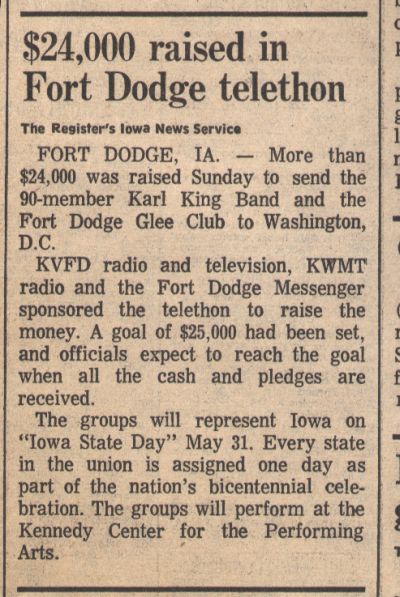 Although the band had ceased playing the fair circuit by the 1970s, it did receive what was perhaps its greatest musical opportunity when, under Green's direction, it was selected to represent the state of Iowa at the bicentennial celebration in Washington D.C.