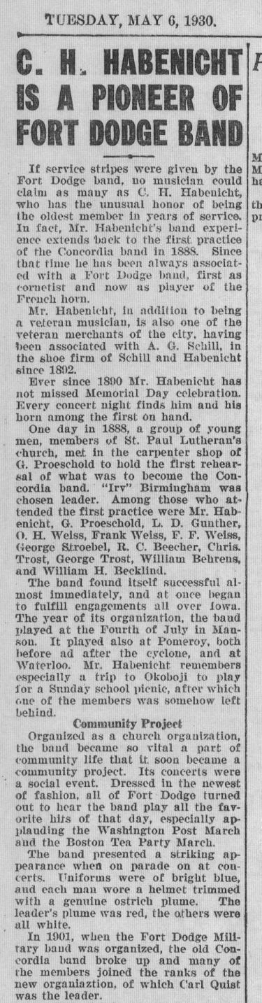 This article is from the newspaper especially printed for the 1930 dedication of the new bandshell in City Square Park in Fort Dodge.