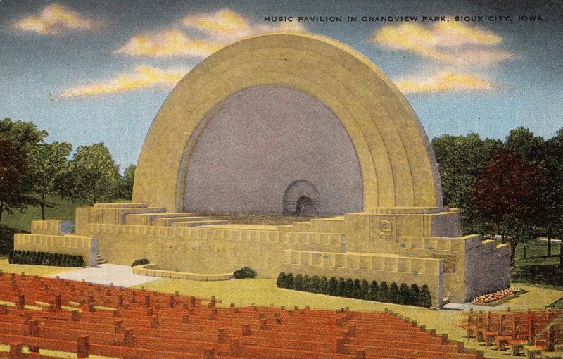 The pavilion was the product of the Great Depression of the 1930's and its construction reflected a sense of optimism and hope for the future at one of the low points in our nation's history. Constructed under the Federal Works Progress Administration, it was designed to bring economic relief by providing jobs and stimulation for the local economy. The bandshell has become one of the most recognizable structures in Webster County and is clearly a symbol of Fort Dodge. The dedication of the bandshell, which was held June 7, 1938 in conjunction with the annual convention of the Iowa Bandmasters Association, was one of the largest celebrations in the history of Fort Dodge. More that 15,000 people attended the dedicatory concert.