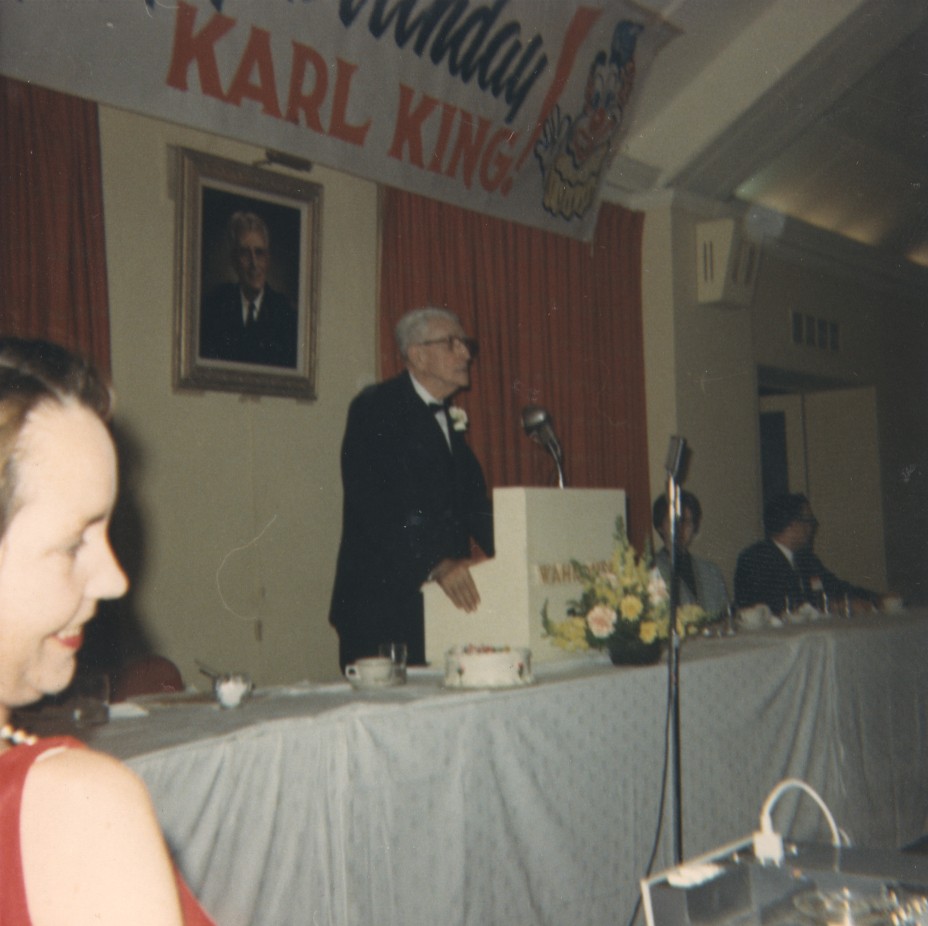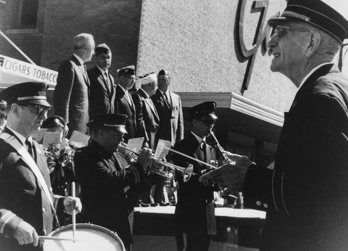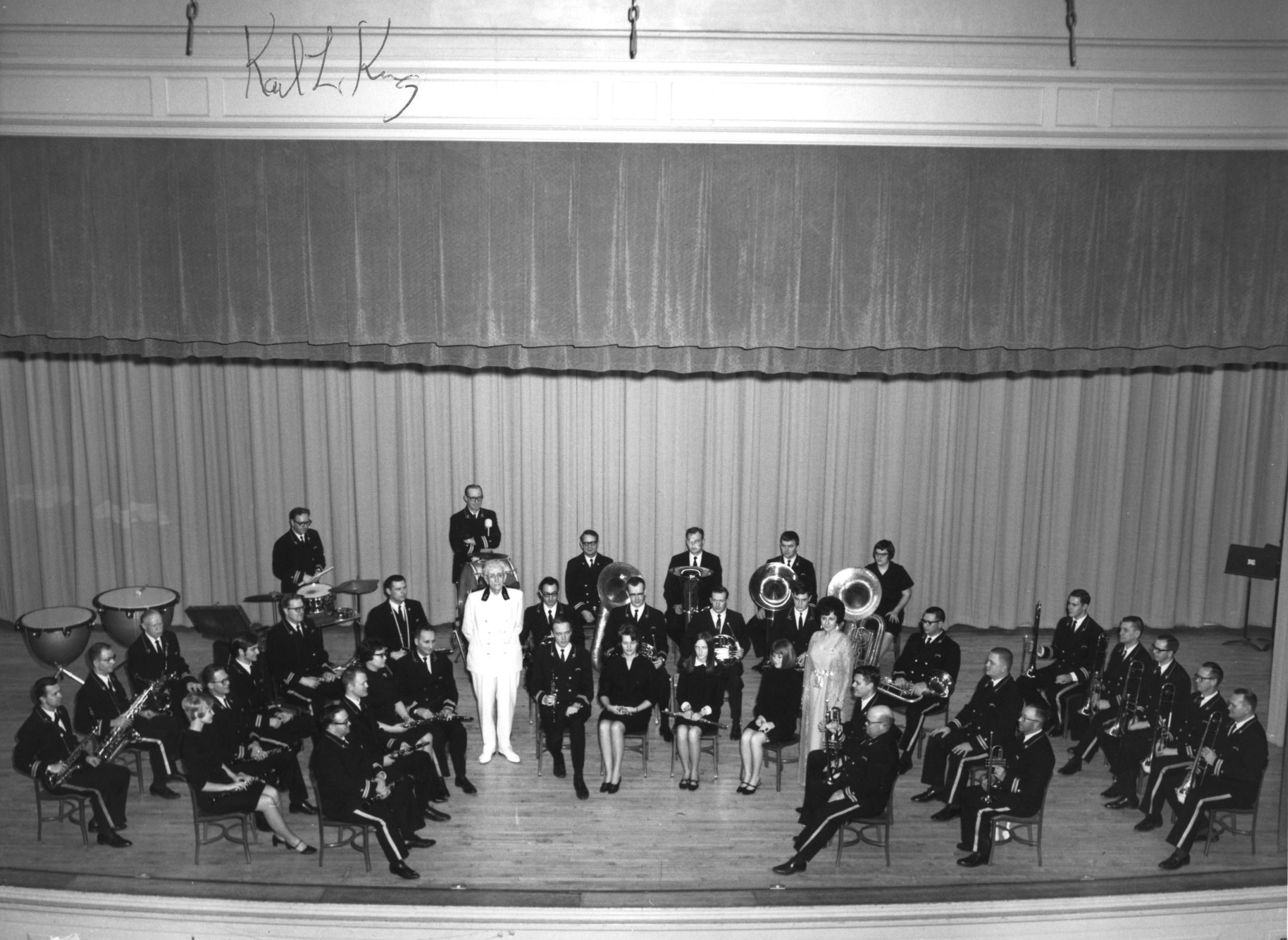 photo taken in the Phillips MS Auditorium, Karl King in white