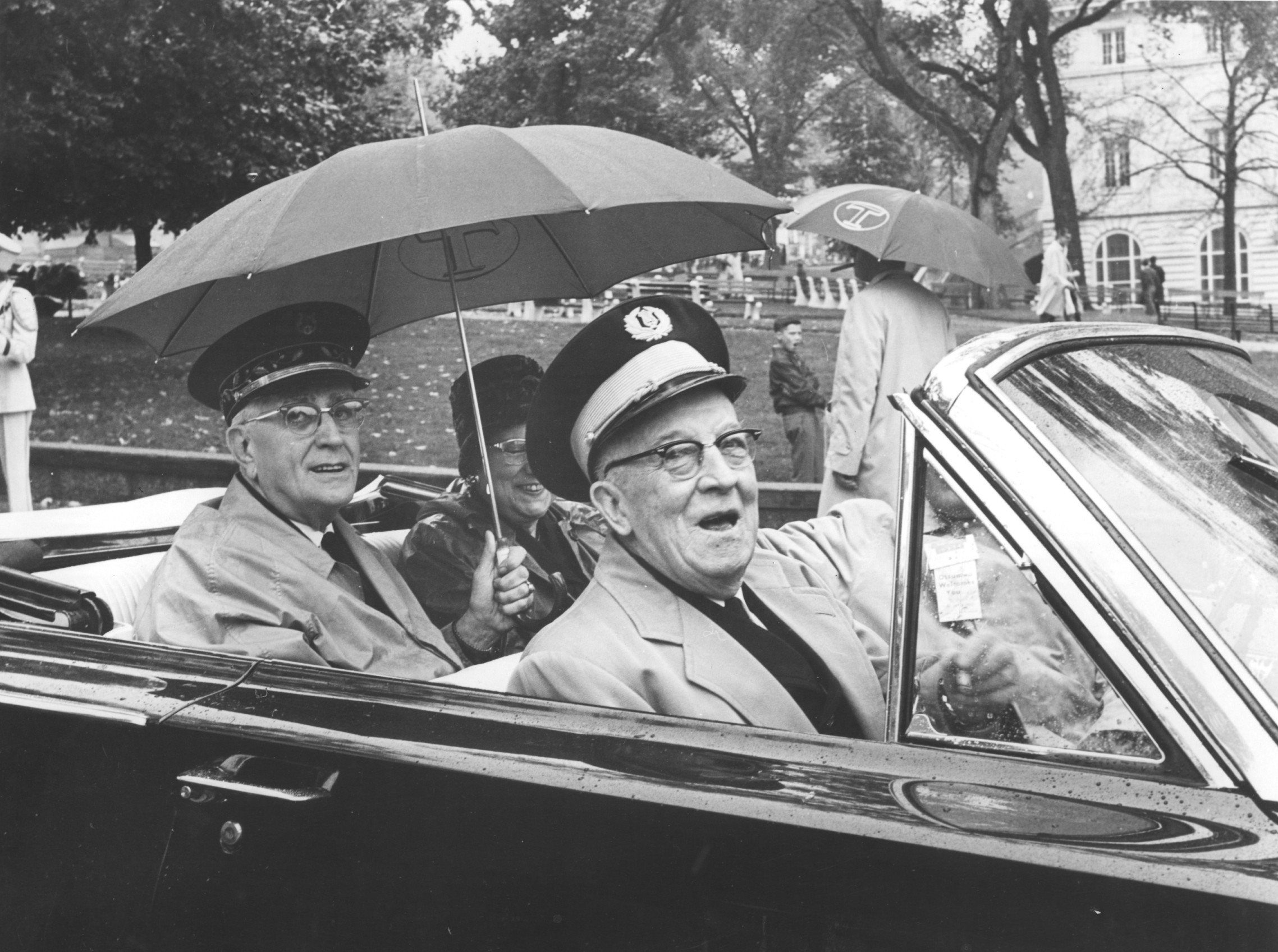 Mr. Dvorak, Director of Bands at the University of Wisconsin, who was travelling with Don is pictured above with Karl King and Don Butterfield.