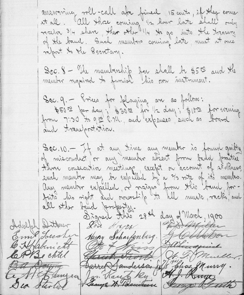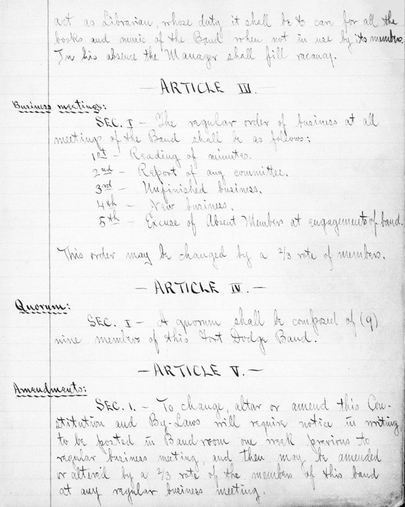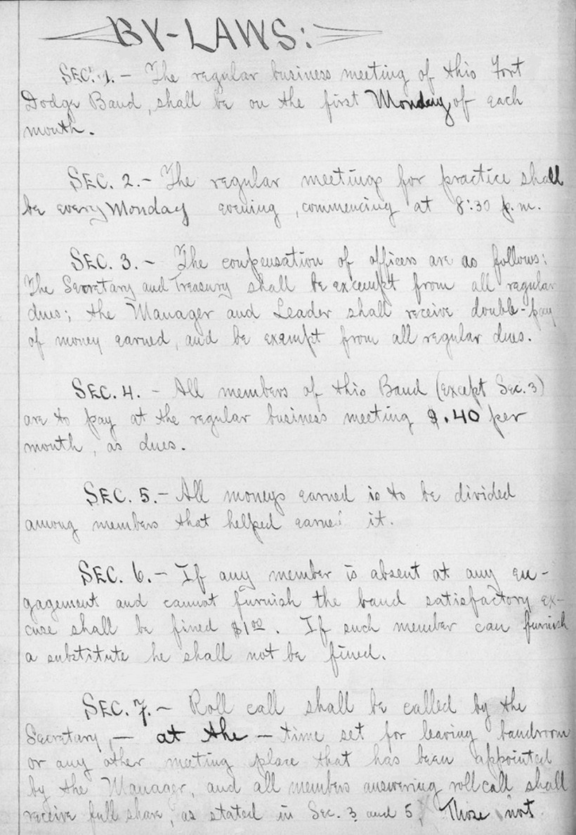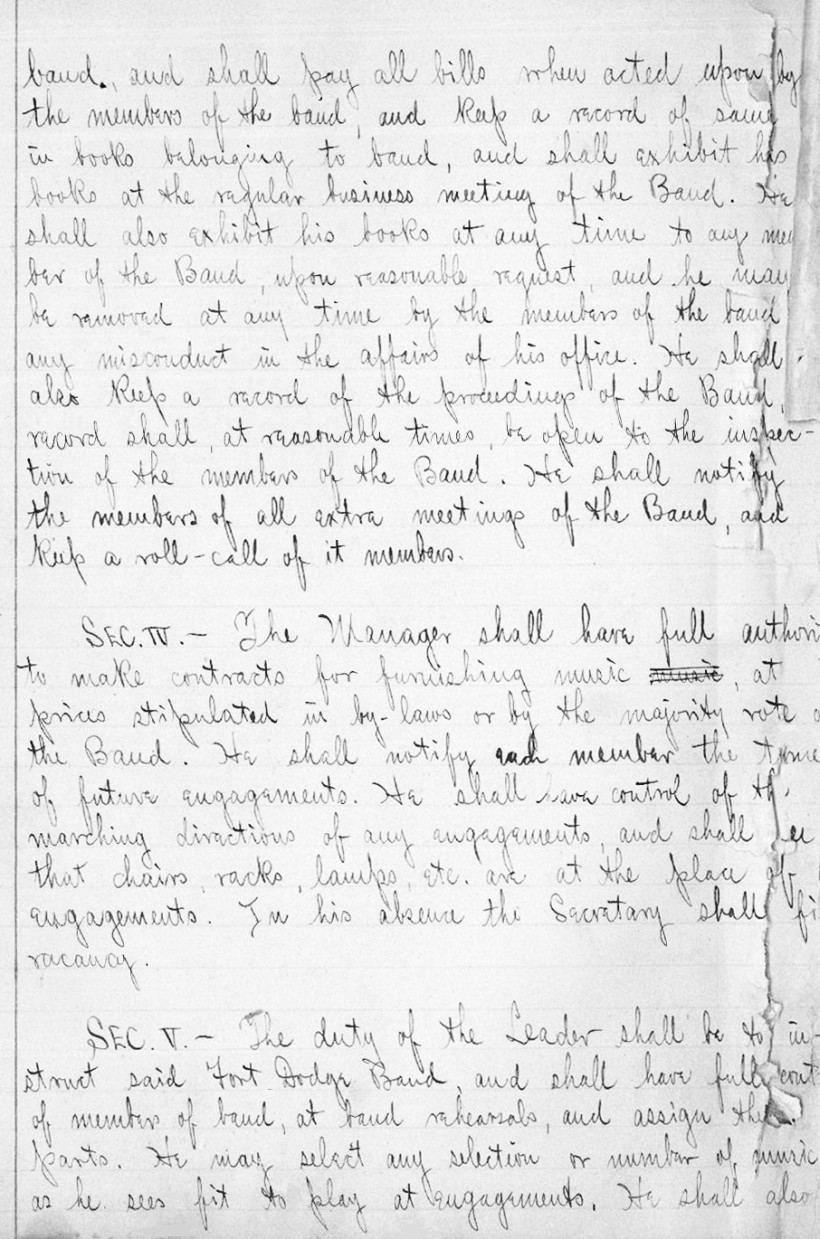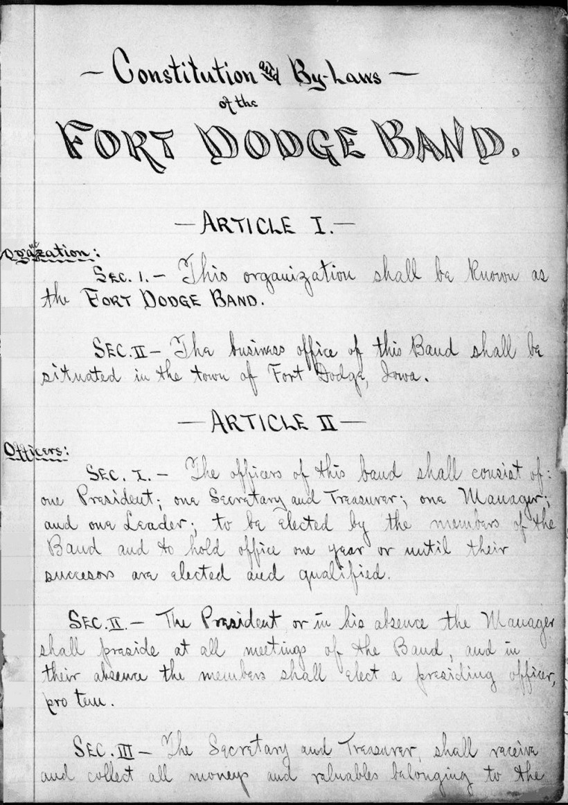 wear, there still exists a 1900 record book of the Fort Dodge Band.