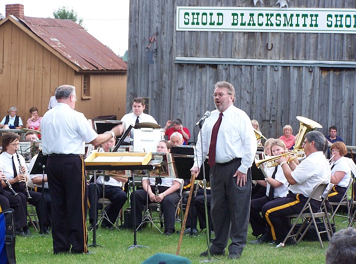 Robert Patton was the special guest soloist for this evening's concert. Mr. Patton is a well-known and popular vocalist in the area, having sung with the Karl King Band on numerous occasions, along with several other area performing groups. Originally a native of Gowrie, he served with the Singing Sergeants in Washington D.C. for many years, performing at the White House on several occasions. He is now the publisher of the Gowrie News, which has been in his family for several generations.