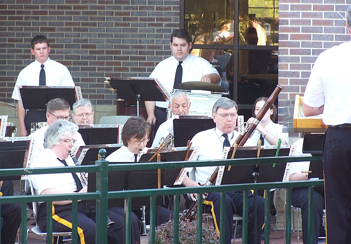 The Karl L. King Municipal Band of Fort Dodge, Iowa presented a special concert on Sunday evening, July 3, in honor of Independence Day. The band moved from its performance site downtown to the grounds of the Fort Museum for this concert, where it performed behind the trading post. We are very excited to team up with the Fort Dodge Dragoons to present this family night at the Fort, commented King Band director Jerrold Jimmerson. There was something for everyone, with a concert by Will Lopes and friends following the King Band concert, and then fireworks at dark to top off the evening.