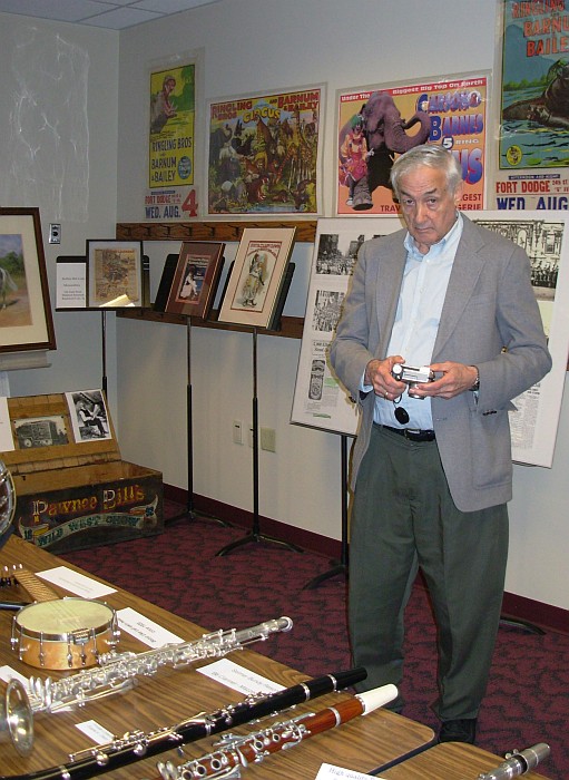 He is pictured holding Merle Evans' cornet.