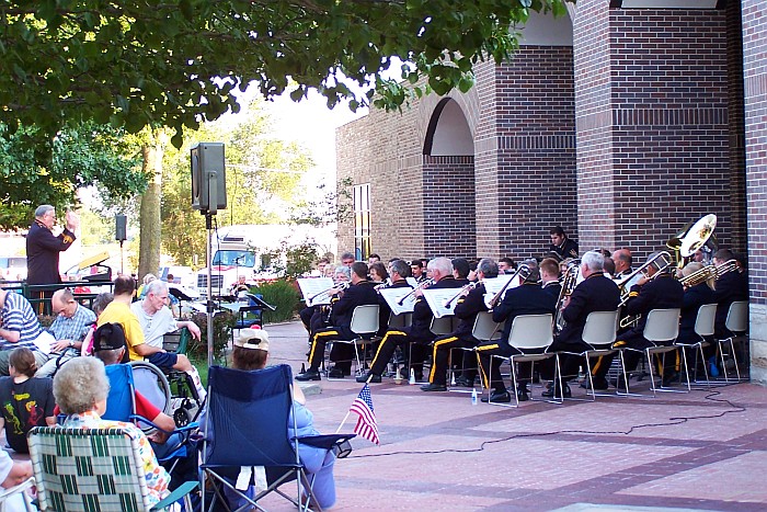 The Karl King Band is seen performing in front of the Fort Dodge Public Library this season. With the renovation of the Karl King Bandshell in Oleson Park still in progress, again this year there was a need to move the location of the traditional Sunday night concerts. Known to many residents as the City Square, the park was renamed Karl L. King Park several years ago by the Fort Dodge City Council.