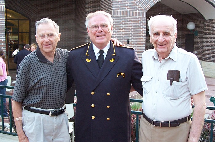 Conductor Jerrold Jimmerson poses with some friends of Karl King and the Karl King Band. On the left is Max Whitlock, retired bandmaster who taught in Payton, Jewell, and South Hamilton Schools. To the right is Torry Antimuro, retired bandmaster who taught in Sanborn and Webster City. Torry played clarinet for Karl King beginning in 1959.