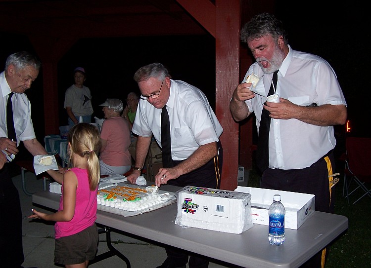 Jerrold Jimmerson serves cake to members of the Karl King Band.