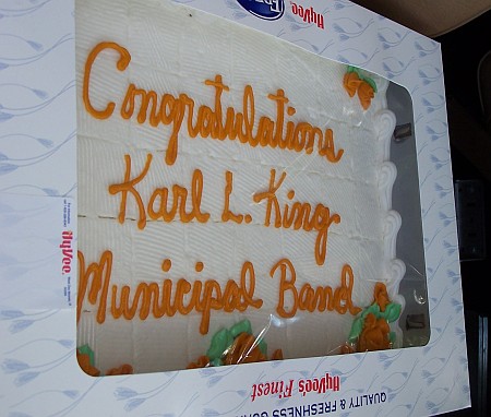 The Karl L. King Municipal Band culminated the evening festivities with a special concert. The opening fanfare set the tone for the evening, as the Band performed George Gershwin’s Strike Up The Band. Several songs written by Karl King were included in the program, including the marches Hawkeye Glory and his most famous work, Barnum and Bailey’s Favorite.