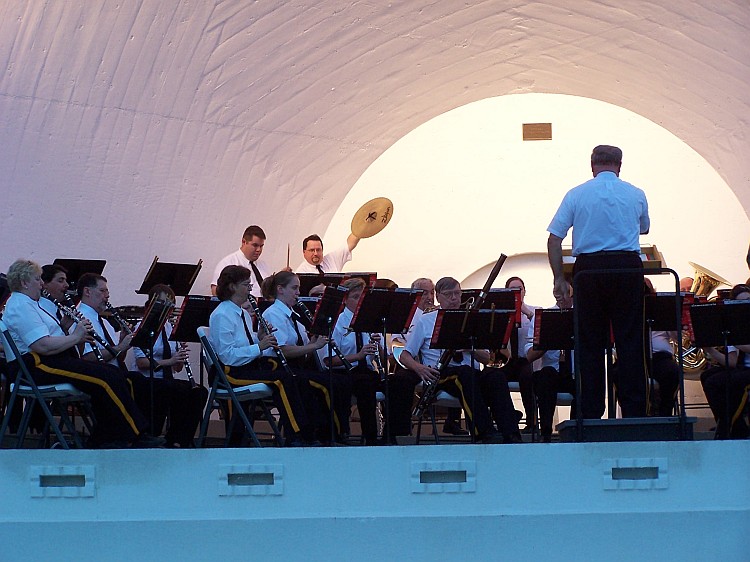 A medley of several Karl King themes, titled Melody ala King, arranged by Harry Alford, were heard, along with the fox trot, Pale Moon, by former King Band member Doug Hatton, and Slavonic Rhapsody, by Carl Friedmann. Some of these same songs were also performed 70 years ago at the very first dedication ceremonies held in 1938.