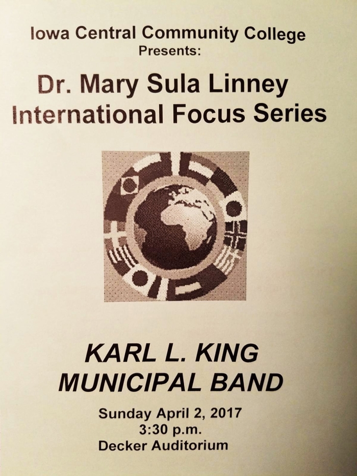 This was the third concert in the 2017 Indoor Concert series held in the Decker Auditorium on the campus of Iowa Central Community College.