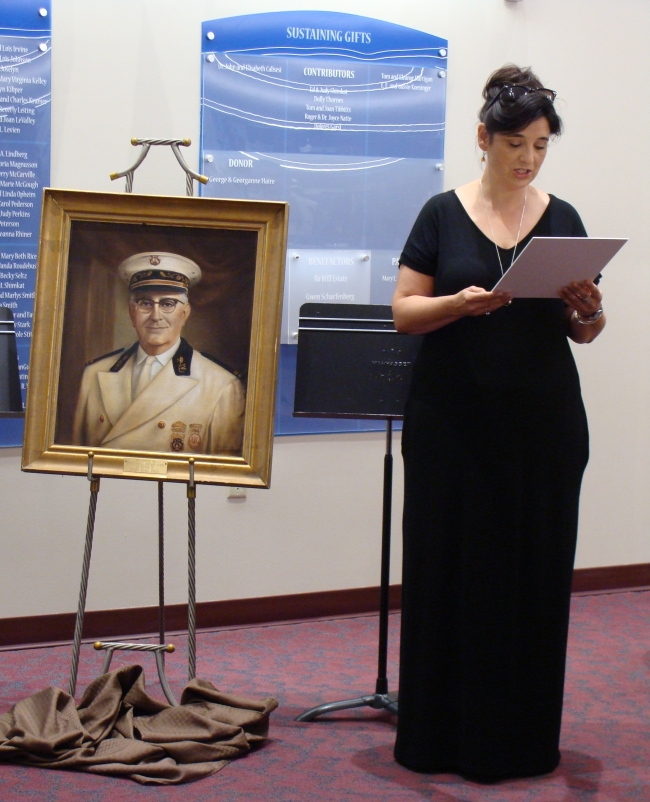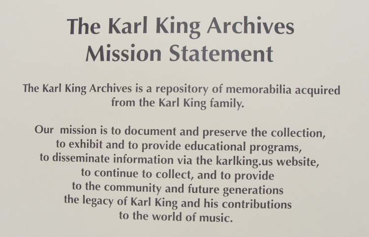 Archivist Nancy Olson reads the mission statement of the Karl King Archives.