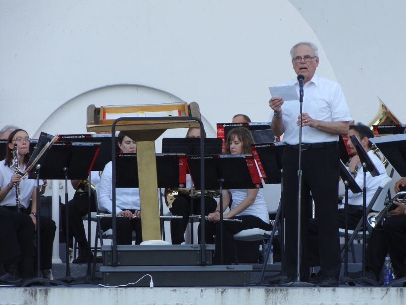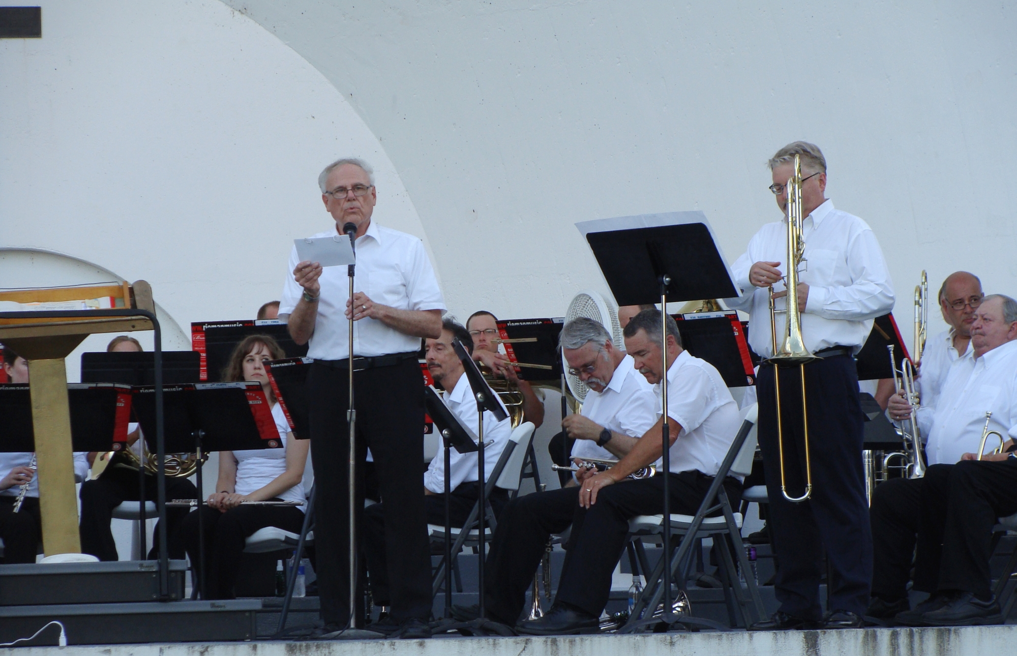 | This July 15 concert was nearing the end when the march Grandioso arranged by Andrew Glover (C. L. Barnhouse Company) was performed. |