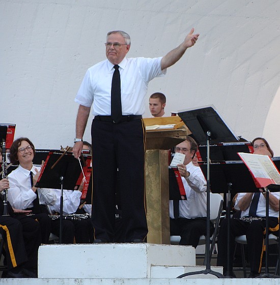He first heard the band much the same way people do today. "I grew up about six blocks from the bandshell and I could hear the band playing on Sunday nights. I just really enjoyed listening to that," said Jimmerson. "Even if I didn't go to the concert, if the wind was blowing the right direction I could hear the band." Encouraged by his grandmother, when Jimmerson was a sophomore in high school he went to King and asked if he could play bass clarinet in the band. King mentioned he hadn't had a bass clarinet in a few years. "Well about halfway through my first practice he stopped the band right in the middle of a song and said to the drummer, 'This kid's pretty good. See that he has a uniform before he goes home tonight," said Jimmerson. "I've enjoyed being part of that band ever since." Since Jimmerson became conductor of the band, he has strived to preserve the traditions and history of the band, organizing the band and programming performances much the same way "The March King" had done himself. The municipal band of Fort Dodge began in 1900. "Here we are 110 years later continuing those same traditions. That's a point of pride for Fort Dodge," said Jimmerson. The band plays 12 performances a year: Eight summer concerts (the last was on July 25), three winter concerts and Memorial Day. Those 12 performances are something Jimmerson could not do without the dedication the band receives from its members, he said. While not conducting the King band, Jimmerson has been the on-again off-again conductor of the Manson Meridian Singers in his hometown of Manson for more than 25 years, striving to keep the group together when no other leader was there. After the Manson Meridian Singers had been together for 10 years the director left in 1981. Jimmerson had sung with the group for five years. "After 10 years in the community I thought it was an outstanding group for the community to have. So I said I'd do it for a year or two. Then pretty soon I'd done it for five years, then 10, then 15 years," said Jimmerson. Eventually, however Jimmerson left the group for two years. For another three years he again sang with the group, until, again, the group's director left, leaving Jimmerson to either lead the group or let it fall apart. Loving music as he does, Jimmerson is again leading the group for the singers' 40th anniversary. Jimmerson has also taught instrumental music for 41 years in four different school systems, 29 of them in Manson. He still continues to substitute teach, do clinician work, serves as a mentor for beginning band directors and serves as an adjudicator for music contests and festivals. He has also directed the Senior Choir at the Methodist Church in Manson for 23 years. "My life has really been centered and focused on music," said Jimmerson. "I just love being together with people making music, and I've never really wanted to do anything else." |