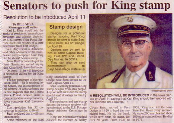 The Fort Dodge Messenger publicized the effort to secure a stamp for Karl King.