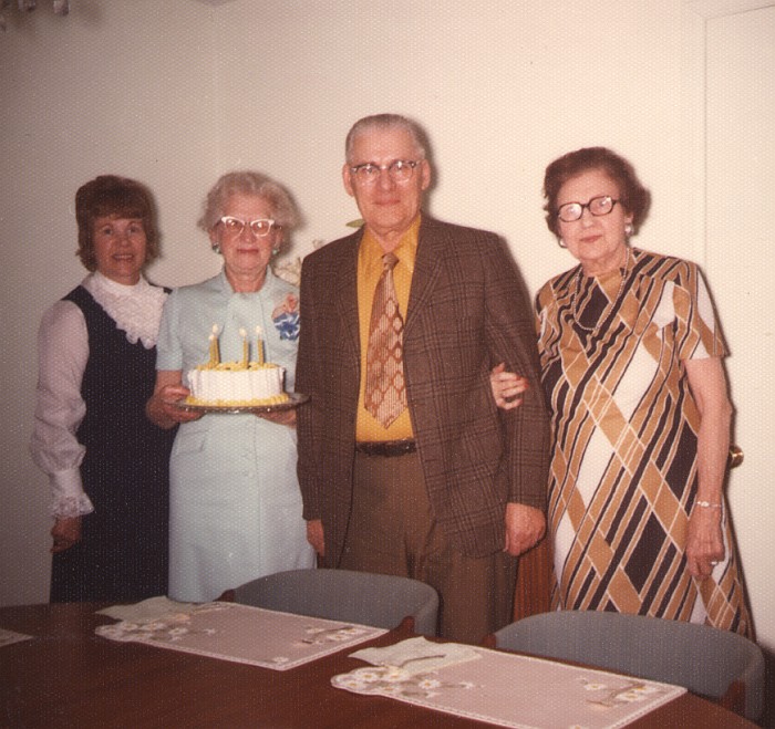 Birthday celebration, Velma and Tim Pray with Ruth King